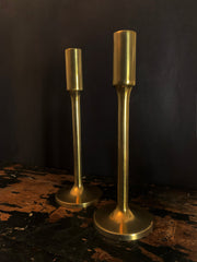Modern Rustic Pair of Gold Candlestick Holders. Bottom is lined with felt so it cannot scratch any surface. Mix and match with your other holders or keep it clean and classic with the Madelyn pair! Any candle taper color would go magically with these!